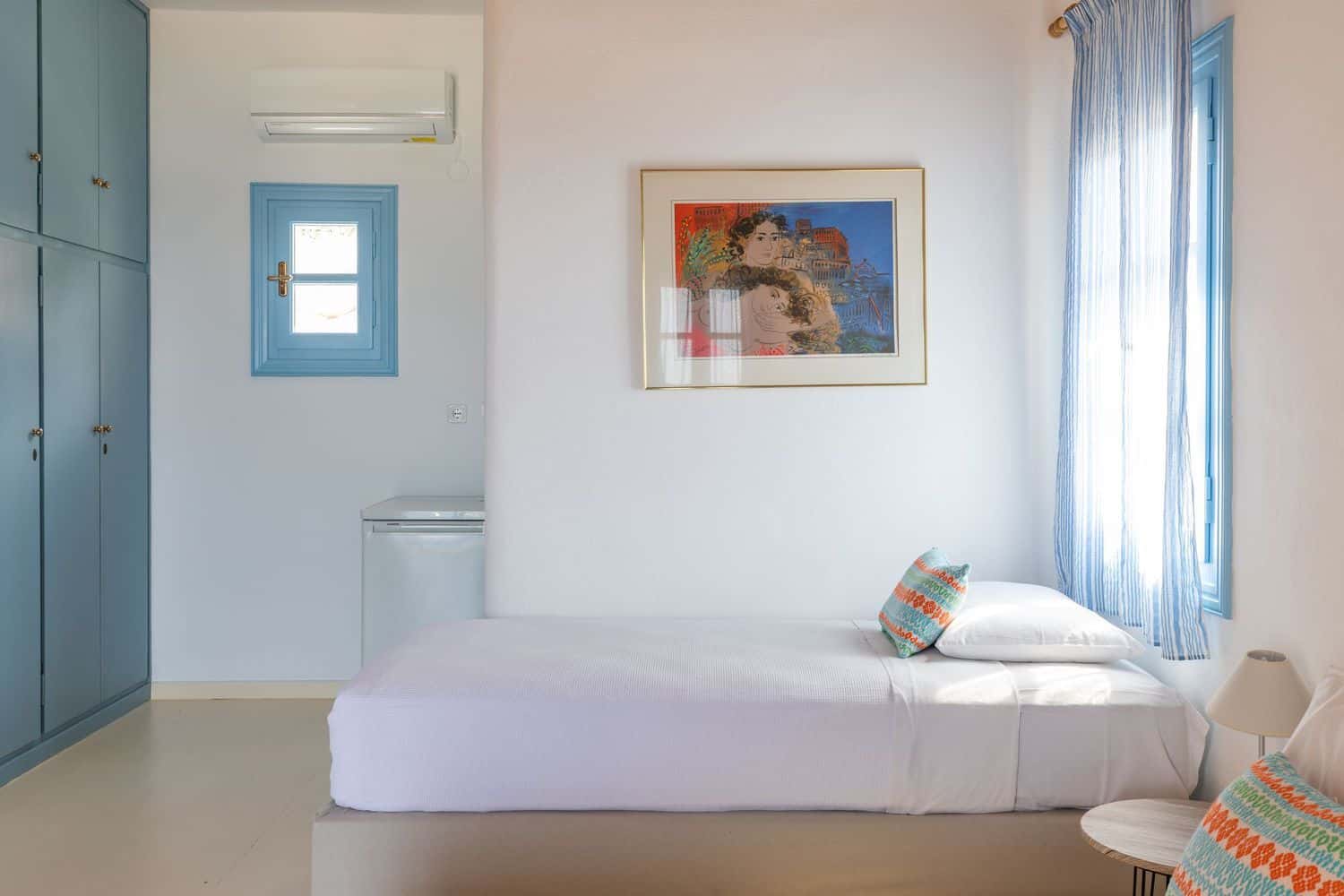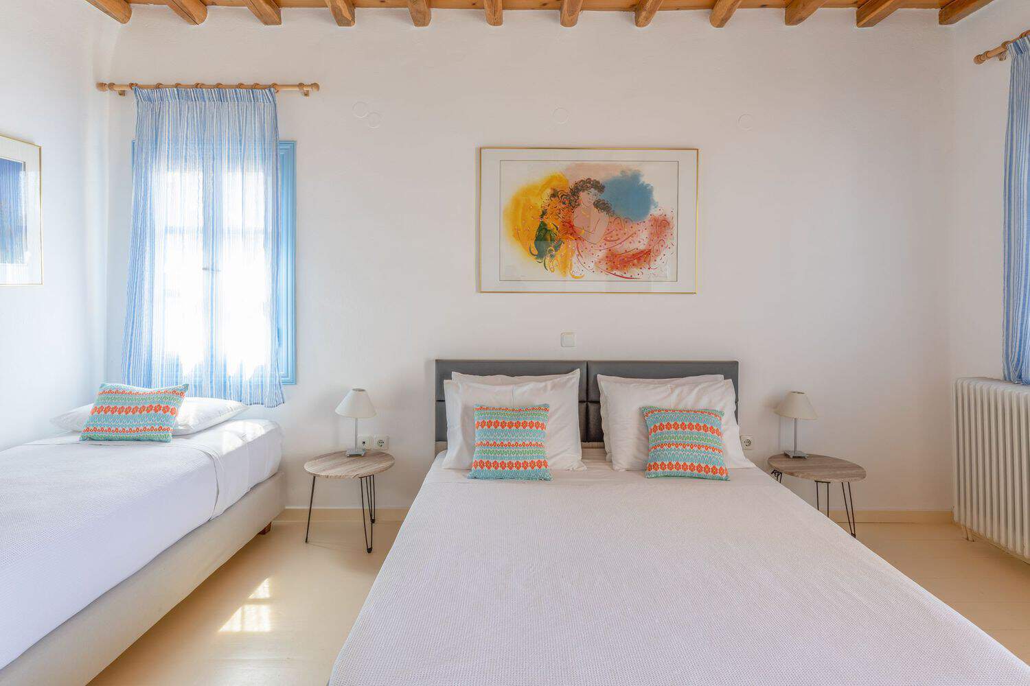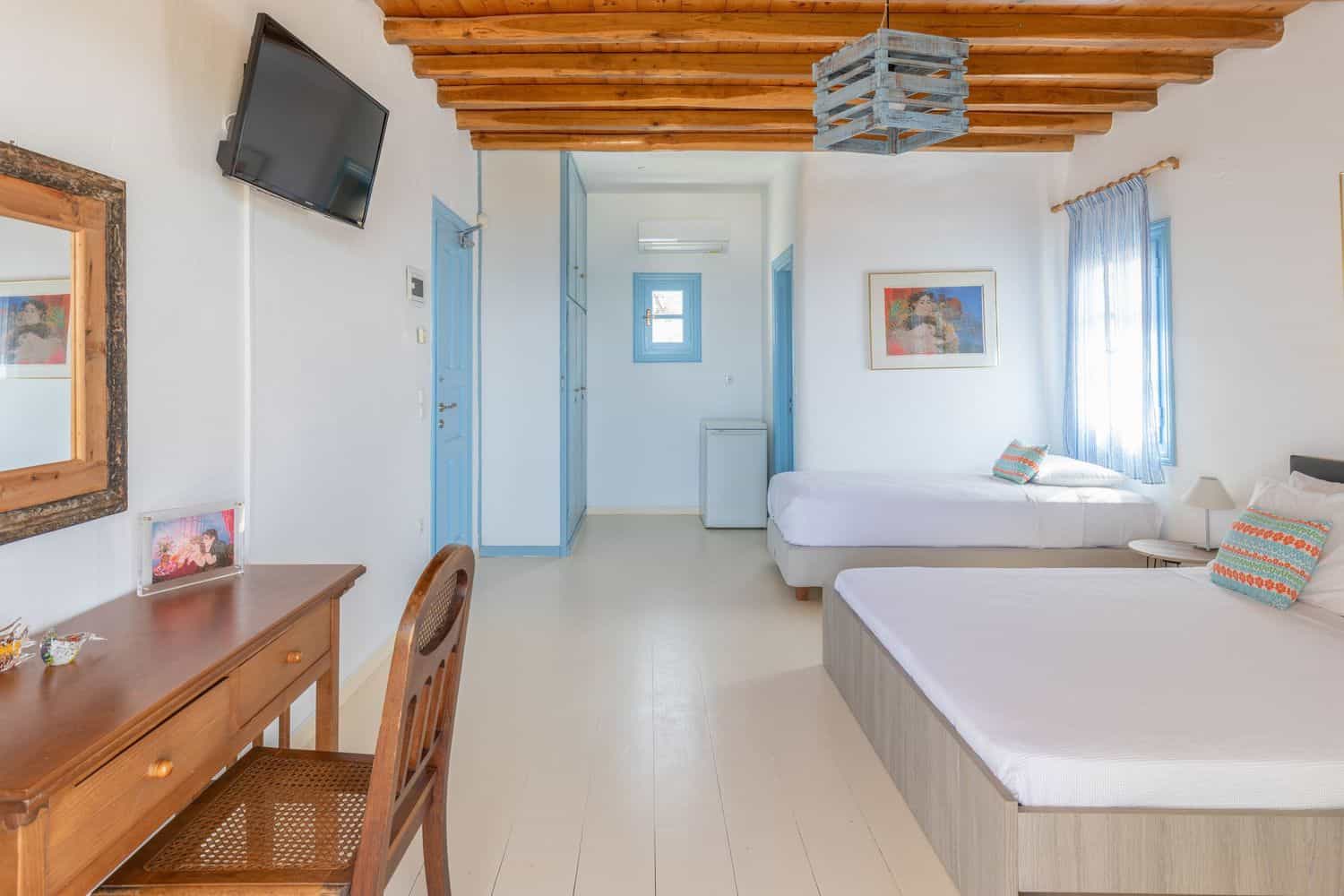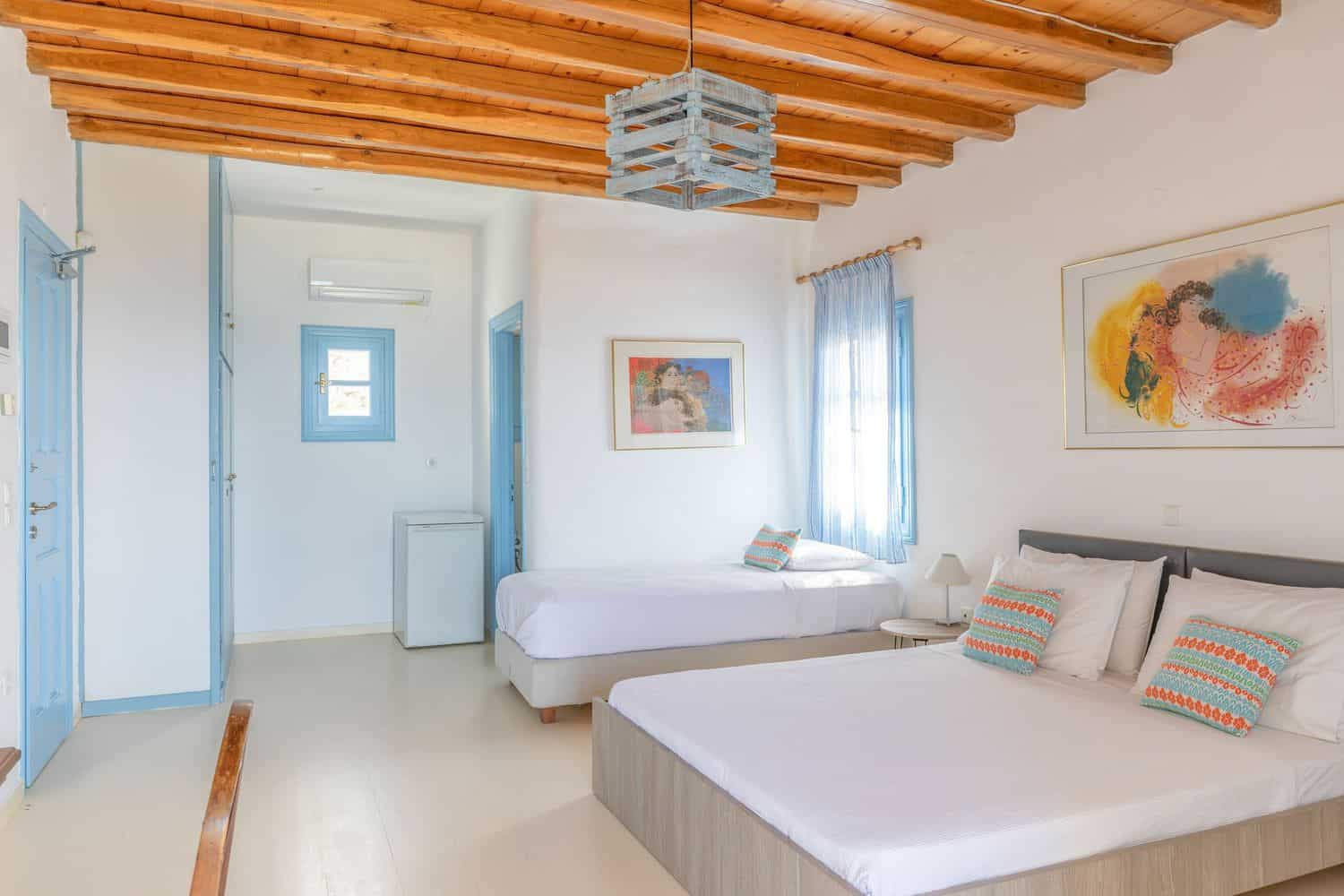 • 1 τρίκλινο υπνοδωμάτιο με 1 queen size κρεβάτι και 1 μονό κρεβάτι ή 3 μονά κρεβάτια
